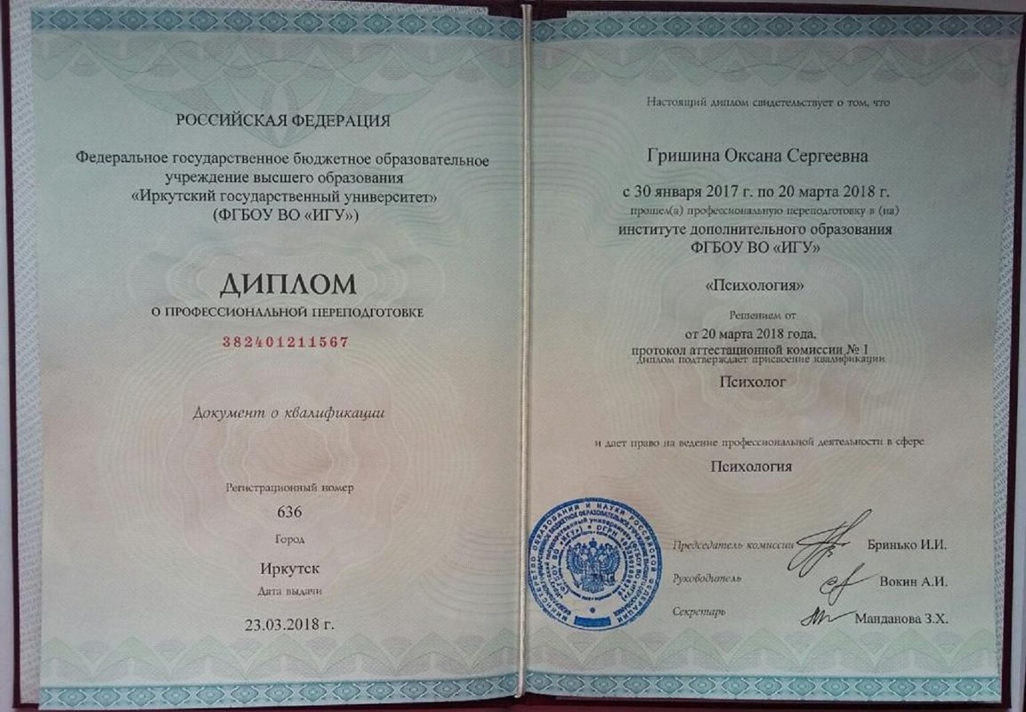 - Иркутский Государственный Университет - Психология,